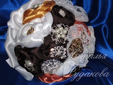 Наши мастера сделают на заказ брошь букеты для невесты и свадебные аксессуары. Бкеты из брошей широко популярны в европейских странах и завоевывают позиции в Росси. Неудивительно, что все больше современных невест отдают предпочтение необычным букетам: из брошей, пуговиц, фетра, бусин, перьев, бисера и т.д. Брошь букеты великолепно переливаются при дневном и искусственном свете, станут изюминкой невесты и подчеркнут ее незабываемый образ. Возможно изготовление букета дублера (уменьшенной копии основного букета), а также других аксессуаров (фужеры, шампанское, подушечка для колец, корзинка для лепестков, свадебные свечи и т.д.) в едином стилевом решении.