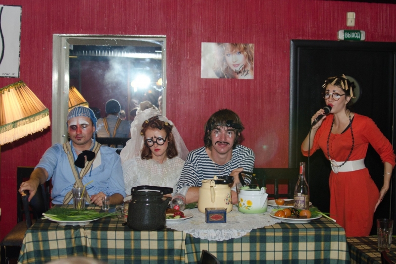 Состав: 5 человека: Актер – Сергей Палыч, Актриса – Маруся, Актриса – Матильда, Актриса – Дуня, DJ – Лось/Леший..